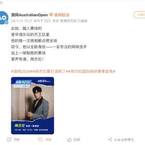 1月12日,澳大利亚网球公开赛组委会正式官宣,华语音乐天王、知名网球爱好者周杰伦将参加澳网“一球制胜”挑战赛(1 poi...