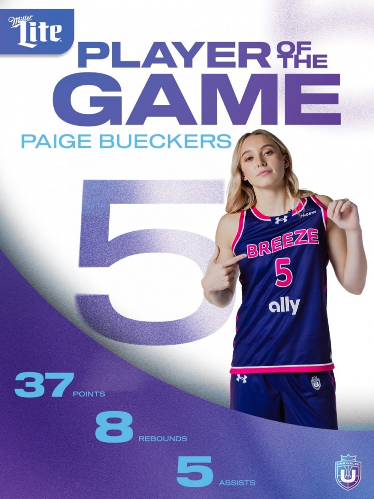 本场比赛微风队的佩奇·布克斯出场20.4分钟,19投14中,拿到37分8板5助,37分也是她至今的最高单场得分,同时她还当选了全场最佳。